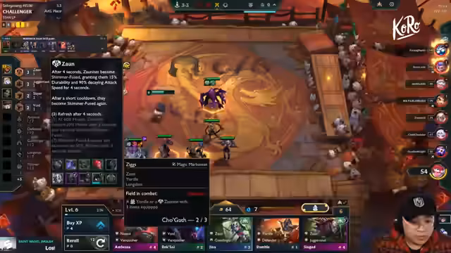 02:53:55Im weiteren Verlauf des Streams wechseln die Strategien häufig. Der Streamer experimentiert mit verschiedenen Builds, wie AD-Kaiser und Yunara. Dabei wird die Rollstrategie angepasst, um Starke Synergien zu finden. Die Suche nach Schlüsseleinheiten wie Kaiser oder Warwick steht im Vordergrund, um den Board zu optimieren. Es wird über die Vor- und Nachteile von Builds wie AD gegen AP diskutiert und entschieden, wann es sinnvoll ist, ein Level-Up zu pushen oder Gold zu sparen. Die Diskussion beinhaltet auch die Nutzung von Augments zur Stärkung der Synergien.