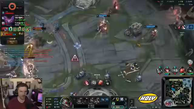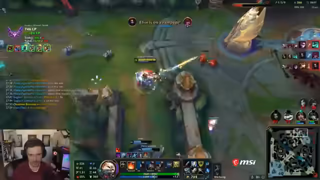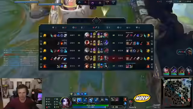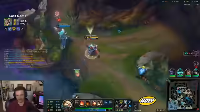 02:21:59Nach einem spielerischen Rückschlag analysiert der Streamer sein League of Legends-Spiel. Er identifiziert taktische Fehler und preist die hohe Schadensoutput des gegnerischen Vayne Jungle, die er als extrem potent beschreibt. Besonders die Situation im Top-Lane, wo eine Elise mit 17 Kills das Spiel dominiert, und die Notwendigkeit einer koordinierten Antwort auf der Bot-Lane gegen die Vayne/Xayah-Kombo werden als kritische Punkte im weiteren Spielverlauf hervorgehoben.