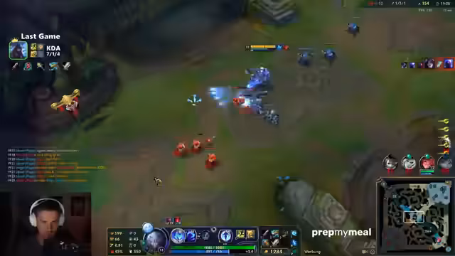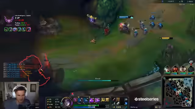 03:16:56Der Streamer reflektiert über die schlechte Leistung seines Junglers, der mit nur 8 CS in Minute 3:30 auffällt und seine gesamte Bot-Seite verloren hat, ohne dafür die Top-Seite zu sichern. Er vermutet, dass der Spieler möglicherweise disconnected war, da die Statistik von 8 Minions und 2 Jungle-Camps extrem niedrig ist. Diese Beobachtung führt zu einer allgemeinen Frustration über die Unberechenbarkeit des Spiels, die er mit dem Sprichwort „Mal ist man der Hund, mal ist man der Baum“ kommentiert. Die eigene Position im Spiel ist ebenfalls prekär, da wichtige Fähigkeiten wie Flash fehlen, was die Anfälligkeit für Ganks erhöht. Die Sorge, von Gegnern wie Soraka oder TF überrascht und getötet zu werden, ist konstant präsent, insbesondere wenn sie versuchen, in den Jungle zu drängen. Ein missglückter Versuch, einen Gegner zu töten, wird als „nice try, aber so nice fand ich den gar nicht den try“ abgetan, was die allgemeine Enttäuschung über den Spielverlauf unterstreicht. Die Situation eskaliert, als der Streamer selbst in Gefahr gerät und scherzhaft sein mögliches Ende im Stream ankündigt, was die angespannte Atmosphäre verdeutlicht.
