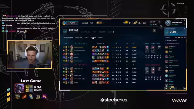 03:29:32Der Streamer reflektiert kritisch seine eigene Leistung als Jinx-Spieler und die damit verbundenen Herausforderungen. Er erkennt, dass er sich als Jinx oft darauf verlassen muss, dass seine Teammitglieder ihren Job richtig machen, um erfolgreich zu sein. Er fühlt sich nicht in der Lage, sich selbst in eine Position zu bringen, in der er das Spiel alleine tragen kann, im Gegensatz zu guten Jinx-Spielern, die unabhängig vom Team-Setup Impact erzeugen können. Diese Abhängigkeit von einem „perfekten Peel“ und idealen Bedingungen war bereits in früheren Erfahrungen, wie der Prime League, ein Problem. Der Streamer bemerkt, dass er von einer 5-0-Bilanz auf 5-4 gefallen ist, wobei er die meisten Tode auf Teamfehler zurückführt, aber gleichzeitig einräumt, dass ein besserer Jinx-Spieler diese Tode möglicherweise hätte vermeiden können. Er empfindet das aktuelle Spiel als besonders schwierig, da die Gegner ihren gesamten Gameplan darauf ausrichten, ihn zu töten, was er als „berechtigt“ angesichts der Team-Zusammenstellung der Gegner ansieht. Die Schwierigkeit, gegen bestimmte Champions wie Kiana, Quinn und TF zu spielen, insbesondere ohne Summoner Spells, wird hervorgehoben. Er fühlt sich im Level zurück und ist unsicher, wie er das Spiel positiv beeinflussen kann, was seine Frustration über die mangelnde Autonomie als Jinx-Spieler verstärkt.