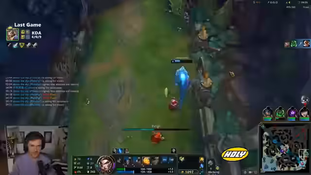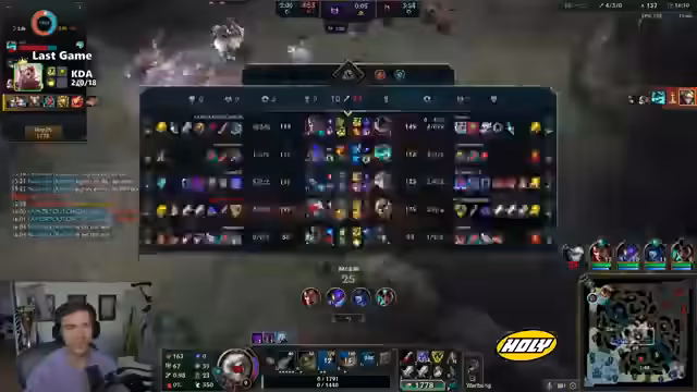 00:19:48Nach mehreren Toden stellt der Streamer sein Championverständnis infrage. Jhin fühlt sich im Vergleich zu Korki extrem brüchig an und führt zu häufigen, vermeidbaren Toden. Er kritisiert Item-Builds wie Muramana, die als scuff empfunden werden. Zudem bemerkt er einen Bug oder Designfehler beim gegnerischen Kaiser, der mit E aus einer Root-Wirkung heraus agieren konnte, was seiner Meinung nach nicht korrekt ist.
