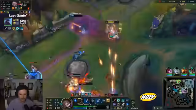 00:10:07Ein erstes erfolgreiches Tötungsplay an der Bot-Lane führt zu der Betrachtung, dass ein einzelner Win kein richtiger Win ist, da er leicht umkehrbar ist. Der Streamer analysiert die gegnerische Teamkomp, die möglicherweise einfacher zu spielen ist, und stellt seine eigene Championwahl in Frage. Er kommentiert seinen Rang und stellt fest, dass er im Vergleich zur letzten Saison weniger stark eingestuft ist, obwohl die Gegner auf dem gleichen Niveau wie vorher sind.