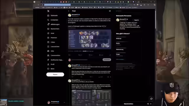 00:05:12Der Stream beginnt mit technischen Anpassungen an der Kamera und Bildschirmeinstellung. Der Streamer gibt an, den Morddocks-Rundgang, einen Metaread von der pbmeta und die Prüfung von Emblems und Anthems durchzugehen. Es wird auch erwähnt, dass Philistix als sehr stark gilt und dass der Fokus auf das Rerollen von Vanguard-Einheiten und die Item-Builds für Kindred liegt.