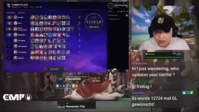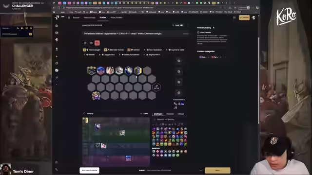 00:33:40Der heutige Stream ist der letzte vor dem Turnier. Am Donnerstag findet kein Stream statt, und am Freitag wird ab 22 Uhr das Turnier übertragen. Es wird noch einiges vorbereitet, aber es sollen auch Games gespielt werden, die dann im Stream stattfinden. Es werden Anpassungen vorgenommen, darunter das Testen von Heavyweight und das Ziel, Davis 3 zu erreichen, eventuell auch Chase 3. Es wird erwähnt, dass Darius auf der linken Seite positioniert werden muss, um nicht schnell fokussiert zu werden. Ziel ist es, bis 6 oder 7 Uhr morgens wach zu bleiben, um nach dem Turnier noch Recherchen anstellen zu können. Es wird überlegt, Tank-Items zu bauen, da Smolder ähnliche Komponenten wie Darius benötigt. Lab 18 war wohl 5,5, und es wird überlegt, was man dann spielen kann, wie Jagger, Rave, Battle Academia oder Star Garden.