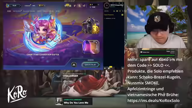 05:31:03Es folgt ein Werbespot für den Partner Koro, ein Online-Shop für haltbare Lebensmittel und Snacks. Es werden verschiedene Produkte vorgestellt, darunter der Nusstext mit Rauchgeschmack, Amari Proteinix, Maulbeeren und die vegane Bio-Brühe für vietnamesische Nudelsuppe. Es wird auf den Rabattcode 'Solo' hingewiesen, der 5% Rabatt auf alle Bestellungen gewährt, sowie auf den versandkostenfreien Versand ab 69 Euro und ein Geschenk ab 100 Euro Bestellwert. Es wird auf die großen Verpackungen von Koro hingewiesen, die Verpackungsmüll sparen. Es werden auch Protein-Chips mit Trüffelgeschmack und Mango Curry Spread empfohlen. Es wird angekündigt, dass am Donnerstag keine Streams stattfinden, um sich auf das Turnier am Freitag um 22 Uhr vorzubereiten. Es wird betont, dass die Vorbereitung Spaß macht, aber nicht übertrieben werden sollte. Es wird sich von den Zuschauern verabschiedet und auf den Rating-Mode hingewiesen. Es wird sich für die Teilnahme am Raid bedankt. Es wird auf die Schwierigkeit von Level 9 Rush-Comps hingewiesen. Es wird sich auf das Turnier am Freitag gefreut.