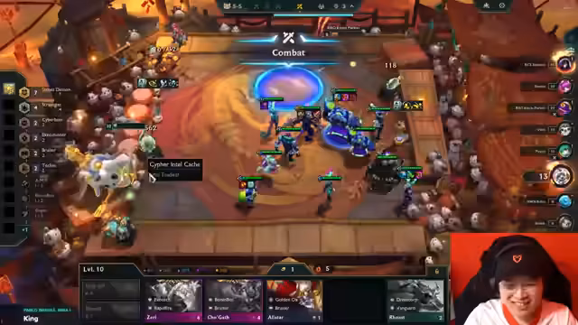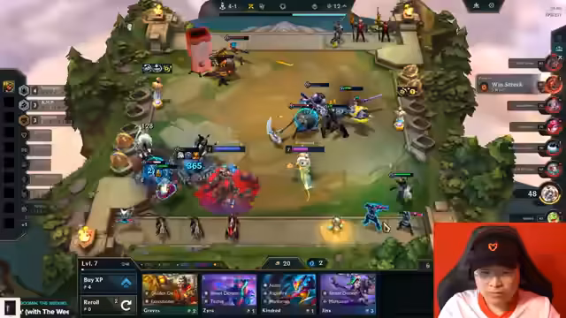 07:21:43Nach der Ankündigung und der Tour kehrt der Streamer zum eigentlichen Inhalt, dem Live-Stream des Spiels Teamfight Tactics, zurück. Er kommentiert seine Builds, die Ranglisten-Platzierungen seiner Teammitglieder und die anstehenden Änderungen, wie etwa einen möglichen Namenswechsel. Der Fokus liegt wieder auf dem Gameplay, wobei er strategische Entscheidungen, Champion-Kombis und Items diskutiert und in die aktuelle Matches vertieft.