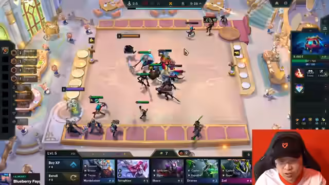 07:55:51Das Gameplay konzentriert sich auf den Aufbau eines Teams mit Champions wie Zeri, Aphelios, Yumi und Jax. Der Streamer analysiert die Items und sucht nach der optimalen Kombination aus Magic Penetration und Heilungsreduktion. Es kommt zu Diskussionen über die Platzierung der Units und die Notwendigkeit, bestimmte Gegenmaßnahmen gegen starke Gegner-Champions wie Mundo oder Shaco zu treffen. Er äußert sich frustriert über einen frühen Verlust und das unflexible Item-Rolling.
