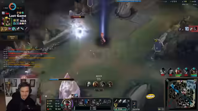02:16:57Der Streamer analysiert seine Leistung im aktuellen League of Legends-Spiel, insbesondere mit dem Champion Ezreal. Er kommt zu dem Schluss, dass er trotz guter Spielweise langsam nutzlos wurde. Die Ursache sieht er darin, dass der Gegner einen Schield-Champion (Nautilus) spielte, der sein Engagement unterband. Er kritisiert Ezreal als Champion, der im Worst-Case-Szenario (gegen Tanks mit Schielden) komplett unbrauchbar sei, da man sich als Spieler stark fühlt, aber am Ende keinen Schaden verursacht.