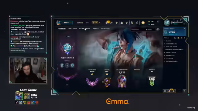 00:32:44Das erste Game endet mit einer Niederlage, wobei der Streamer sich selbst einen Teil der Schuld gibt, da er dumm gestorben ist ist. Es wird über das Aegis-System von League of Legends gesprochen und erklärt, wie dieses die Spielbalance für Spieler mit seltener gespielten Rollen bewahren soll. Der Streamer merkt an, dass er in Voice-Kommunikation schlechter spielt und diskutiert die Auswirkungen von Duo-Queue auf die Game-Erlebnisse.