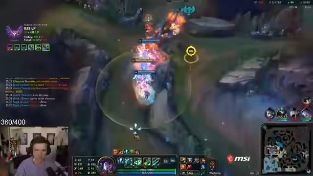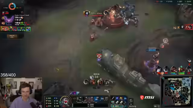 02:37:51Der Streamer kommentiert intensiv das aktuelle League-of-Legends-Game, besonders die Stärke der Champions Nafiri und Syndra. Er kritisiert die Spielweise seines Teams, insbesondere dass Syndra sich nicht gruppiert und stattdessen allein split pusht. Der Streamer zeigt sich frustriert über die Gameplay-Entscheidungen und die aktuelle Elo-Situation, die er als wertlos ansieht. Er betont, dass das Spielpuren Elo-Sammeln dient, ohne Spaß zu bereiten, was er als paradoxes Dilemma beschreibt.