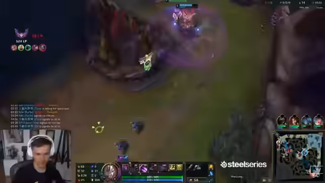 05:24:11Der Streamer beginnt mit League of Legends und äußert seine große Frustration über das Jungle-Rollen. Er empfindet Jungle als „desaströs“ und als „ganz andere Welt“ mit anderen Regeln. Er beschreibt, wie er versucht, seinen Plan umzusetzen, indem er die Map im Auge behält, sich jedoch mit einem fehlgeschlagenen Invade-Versuch gegen die Zyra und der Tatsache konfrontiert sieht, dass seine Botlane früh ohne ihn gewinnt. Er analysiert sein Spiel und kommt zu dem Schluss, dass er mit 0-0-0-Statistik und wenig Impact im Spiel steht, da die entscheidenden Kämpfe ohne ihn stattfanden.