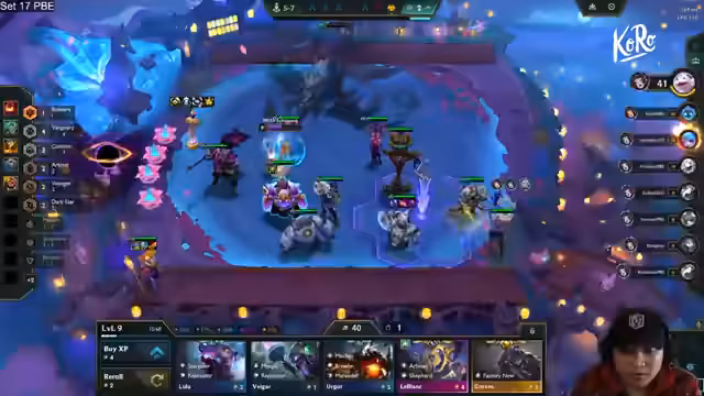 00:21:29Der Streamer widmet sich dem aktuellen TFT-Set 17 und analysiert die Meta. Er identifiziert mehrere als 'gebrochen' (overpowered) eingestufte Kombinationen und Einheiten, darunter ein Miss-Fortune-Replikator-Kommando, ein Kaiser-Kommando und ein Aatrox-Penetration-Kommando. Besonders im Fokus stehen die starken 3-Kosten-Einheiten wie Raas und die hohen Chancen, sie beim Rerollen zu finden. Die neue Mechanik mit den Göttern wird ebenfalls kurz angesprochen.