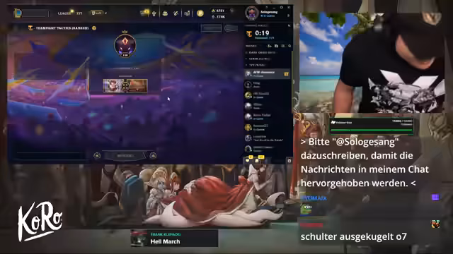 01:42:26Der Streamer kündigt an, Ende Dezember an einem World of Warcraft Hardcore-Event teilzunehmen, bei dem er spielt, bis sein Charakter stirbt. Er erwähnt seine bisherige Erfahrung mit World of Warcraft: Wrath of the Lich King und Legion. Anschließend plant er neue Team-Comps für TFT, darunter eine mit 'Mune Jin, Gnar, Windstreet into Juggernauts' und überlegt, Kaiser Mundo 3 zu rerollen, falls er genügend Mundos findet. Er reflektiert über die Schwierigkeit, bestimmte 'Reroll'-Comps zu spielen, wenn Gegner bereits wichtige Einheiten contesten.
