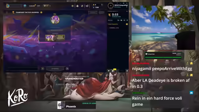05:27:33Im Late-Game wird überlegt, ob ein Full Crew Pivot sinnvoll ist, da Varus hart umkämpft ist. Es wird entschieden, auf Level 8 zu pushen und dort zu rollen. Chen, Six und Chenna werden ins Team integriert, wobei Rage spielten sie noch für den. Es wird überlegt, Gnade 3 anstatt Jarvan zu spielen und Braum ins Team zu integrieren. Es wird festgestellt, dass etwas im Team nicht stimmt und eine dritte Unit auf 3 benötigt wird. Es wird entschieden, TF3 zu verkaufen, um höhere Chancen auf TF3 zu haben. Es wird auch überlegt, ob Level 10 für TF3 notwendig ist. Die Frage, ob 6-Morelle gut genug proggen kann, wird diskutiert. Es wird entschieden, schnell Level zu pushen, da der Gegner auch noch viel stärker wird. Es werden 12 Einheiten gebufft, wobei Attack Speed an Verbündete verteilt wird. Es wird überlegt, welche Units aus der Sire Raken gut für Double Trouble sind. Es wird festgestellt, dass es keine Double Trouble-Combo gibt, außer dieses Sire Raken-Combo. Es wird auch überlegt, ob das ein Malphat-Game ist und welche Items man auf Malford spielen soll. Es wird entschieden, Malfight jetzt reinzunehmen und ein Ding ins. Es wird auch überlegt, Volibear Arcali zu spielen. Es wird festgestellt, dass mit Moguls Jenna sogar der beste Protector ist, da keiner nach vorne läuft. Es wird auch überlegt, welche Combo mit Voli gespielt werden soll, wobei 6 Bession Volibear plus Legendary in Betracht gezogen wird.