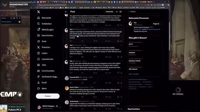 Es wurde über die bevorstehenden Patch-Änderungen gesprochen. Die Rolle der Fighter erhält weniger Omni-Wamp und stattdessen skalierbare Angriffsgeschwindigkeit, was zu einem veränderten Item-Build führt. Die Synergie Socialite wird als 'broken' eingestuft, da sie die höchste Trefferwahrscheinlichkeit bietet.