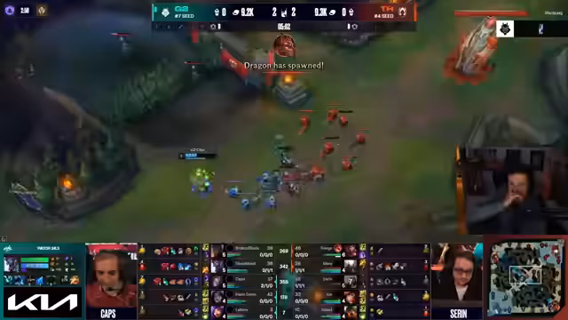 00:02:01Das Spiel beginnt mit einem klaren Early-Game-Vorteil für G2. G2 kontrolliert alle Lanes und dominiert den Jungle von Team Heretics. Der Pyke von Heretics wird als wirkungslos beschrieben, da er im strukturierten Competitive-Umfeld keine günstigen Ganks landen kann und somit sein Early-Game-Potenzial nicht ausschöpfen kann. G2 baut einen erheblichen Goldvorsprung auf, der schnell ins Vierziffiger Bereich wächst, während Heretics sich kaum wehren kann und nur durch Einzelspiele von Ice, wie Aphelios, ins Spiel kam. Die Map-Kontrolle von G2 ist so stark, dass sie frei in der Enemy Base operieren können.