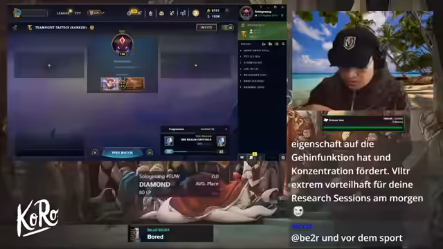 00:15:34Der Streamer diskutiert über seine bevorzugten Champions und Spielstrategien für das aktuelle Set 17. Er erwähnt LeBlanc und MaC als Standard-Wahl und gibt Tipps zur Champion-Auswahl in Abhängigkeit von den gespielten Champions im Chat. Er betont die Wichtigkeit von Teamkombinationen wie Twisted Fate, Jax, Caitlyn und Star, insbesondere wenn viele Twisted Faders im Spiel sind. Er geht auch auf die Notwendigkeit ein, auf bestimmte Champions zu achten und seine Picks daran anzupassen.