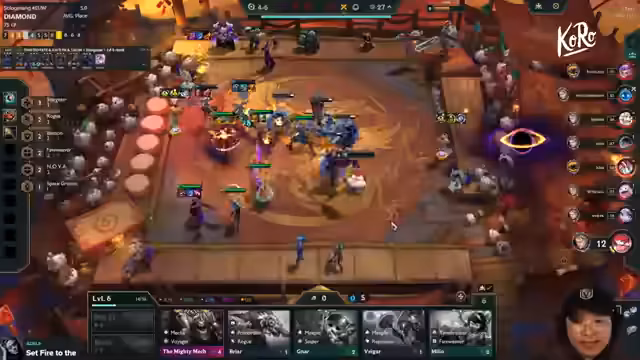 01:41:46Der Streamer spielt ein Live-Spiel und seine Entscheidungen sind vom Publikum mitverfolgbar. Er spricht über seine Item-Choises und warum er bestimmte Builds bevorzugt. Er rollt aktiv nach Champions und passt seine Strategie an das Spiel an. Er diskutiert auch die Positionierung seiner Champions und wie man sie optimal auf dem Feld platzieren kann. Er zeigt auch, wie er auf die Entscheidungen der Gegner reagiert und wie er versucht, den optimalen Zeitpunkt für sein All-in zu finden. Er bleibt trotz einer schwierigen Situation ruhig und versucht, das Spiel mit klugen Entscheidungen zu drehen.