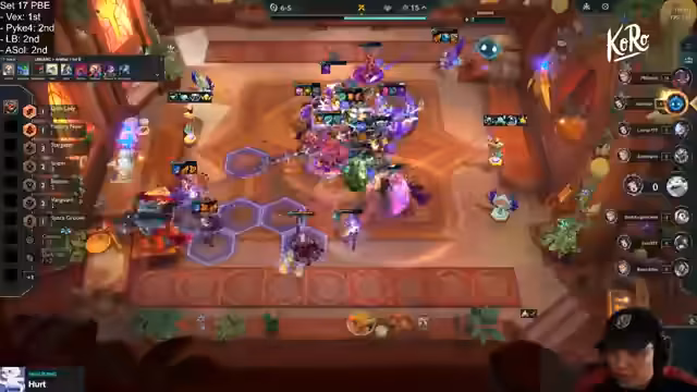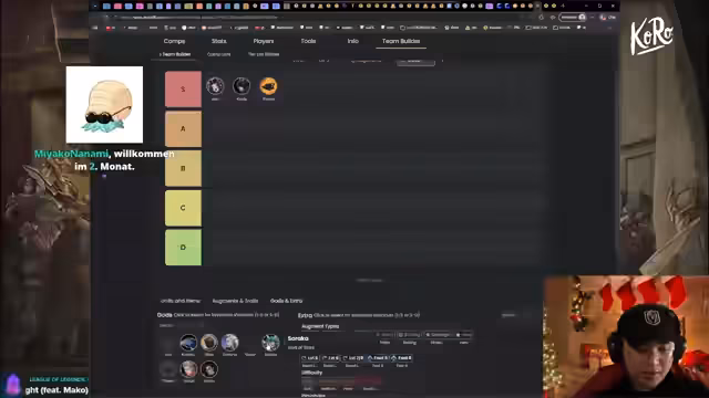 02:57:15Der Fokus des Streams liegt auf dem MetaTFT-Set 17. Der Streamer testet verschiedene Kompositionen wie eine Riven-3-Build und analysiert deren Stärken und Schwächen. Er diskutiert die Wirksamkeit von Items wie Chain Bow und Edge of Night für seinen Hauptcarry Pike und experimentiert mit Augmenten wie Combat Augments und Prismatic Augments. Eine zentrale Strategie ist das Rollen von Units auf Level 3 unter Verwendung des Items Replicator und des Augments Subscription Service, um mit möglichst wenig Gold eine starke Frontline zu bilden.