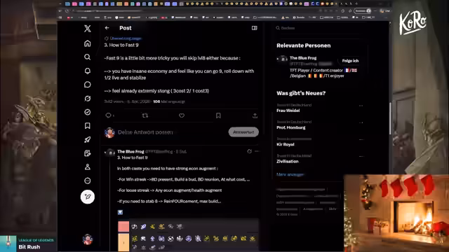 00:08:32Der Stream beginnt mit dem Start eines Community-Events für Sonntag, bei dem der Gewinner 50 All Right Punkte von der Techniker Krankasse gewinnen kann. Der Fokus liegt auf der Besprechung des neuen TFT-Patches, der kurz vor der Veröffentlichung steht. Es wird erwähnt, dass der letzte große Patch auf dem Public Beta Environment (PBE) analysiert wird, um sich auf die anstehende neue Set zu freuen. Der Streamer gibt einen Ausblick auf seine zukünftigen Pläne, einschließlich der Teilnahme an der Weltmeisterschaft und des Aufbaus eines regelmäßigen Streams ab Mittwoch.