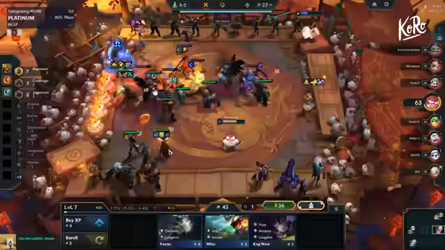 03:21:13Während eines Live-Spiels zeigt der Streamer die Anpassungsfähigkeit der Bilgewater-Kombination in der Praxis. Nachdem er sieht, dass ein Gegner bereits seit Stage 3 sieben Bilgewater-Einheiten hat, entscheidet er sich für einen Pivot zu einer anderen Kombination mit Zena, MF und Swain für späten Backline-Schaden. Der Fokus liegt darauf, die Items für die Träger zu finden und die Synergien optimal aufzustellen, während er gleichzeitig die Gegner scoutet, um seine Siegchancen zu bewerten.