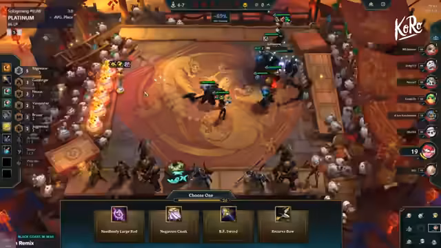 09:10:42Ein entscheidender Punkt ist das Finden und Halten von Bruisern, insbesondere von Nautilus oder einem zweiten Bruiser. Der Streamer erhält ein sehr starkes Augment, das den Bruiser erheblich stärkt. Er ist zuversichtlich, mit diesem Setup eine Win Streak zu halten. Gleichzeitig sucht er nach dem passenden Item für seine AD-Carry, wobei die Kombination aus Rageblade und Evenschrout als potenzielle Option diskutiert wird, um die Damage zu maximieren.