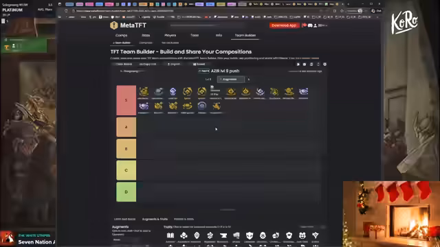07:05:55Der Streamer tauscht sich mit der Community über aktuelle Meta-Strategien und die Nutzung von Tools wie MetaTFT aus. Er erklärt, dass er eng mit MetaTFT zusammenarbeitet und seine Builds basierend auf deren Rankings und Empfehlungen anpasst. Er geht auf spezifische Komps wie Void, Ionia XP und Bilgewater ein und diskutiert deren Vor- und Nachteile. Außerdem erwähnt er die Wichtigkeit von Artifacts und Augments für den Erfolg im späteren Spielverlauf. Er betont, dass Flexibilität und eine gute Kenntnis der Meta entscheidend sind.