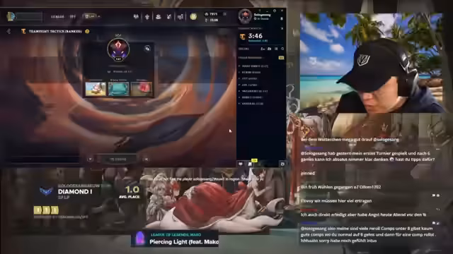 02:30:39Der Streamer beschäftigt sich mit den Schwierigkeiten im aktuellen Spiel, da ihm auf Level 2 wichtige Einheiten fehlen. Er analysiert seine Einheiten wie Teph und Powder, die seine Performance beeinflussen. Die Entscheidungen zur Aufrüstung und zum Wechsel von Einheiten, wie z.B. die Überlegung, Elise gegen Garen zu spielen, werden getroffen, um die Chancen zu verbessern. Die Suche nach richtigen Items und synergistischen Kombinationen ist zentral.