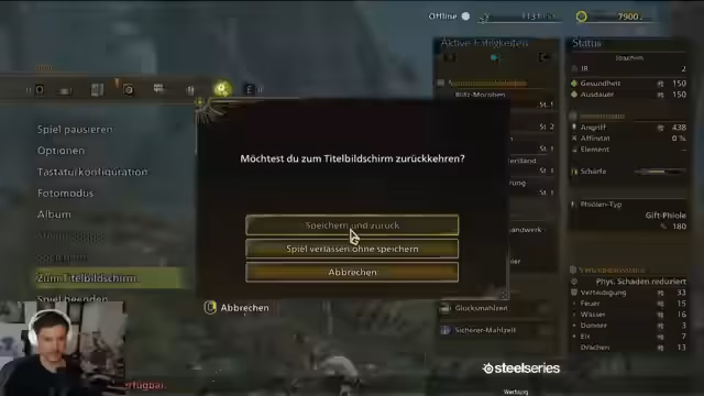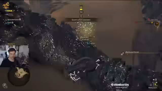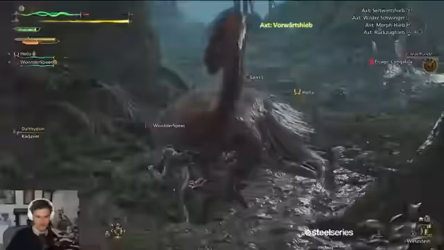 01:25:07Der Streamer sucht nach einer Übersicht aller verfügbaren Angriffe und stellt fest, dass das Spiel einen ins kalte Wasser wirft. Er kehrt zu einer älteren Person im Spiel zurück und erhält Dank für seine Taten, hätte aber lieber Gold oder andere Belohnungen. Er erfährt, dass man im Zelt Mahlzeiten bekommen kann, die Ausdauer und Leben verbessern. Er sucht nach einer empfohlenen Ausrüstung und findet diese beim Schmied, wenn eine Quest aktiv ist. Er passt seinen Charakter optisch an und gibt seinem Seilkriecher den Namen Günther. Der Streamer sucht sein Zelt, um Waffen zu wechseln, und findet es schließlich im Basislager. Er überlegt, das Spiel zu verlassen, um League of Legends zu spielen, möchte aber vorher noch eine neue Waffe ausprobieren. Er kritisiert die Steuerung als nicht flüssig und clunky, was seiner Meinung nach ein elementares Problem des Spiels ist. Er vergleicht die Steuerung mit Elden Ring und stellt fest, dass sie dort etwas besser ist. Der Streamer wechselt die Waffe und probiert das Langschwert aus, das ihm am Anfang gefallen hat, von dem ihm aber abgeraten wurde. Er stellt fest, dass er sich mit dem Langschwert schneller bewegen kann. Er experimentiert mit verschiedenen Waffen, darunter die Doppelklingen, die er als 'fake schnell' bezeichnet, und den Dämonenmodus. Er probiert das schwere Bogengewehr und den Bogen aus, findet sie aber für Singleplayer ungeeignet. Zuletzt testet er die Insektengläfe und Schwert und Schild.