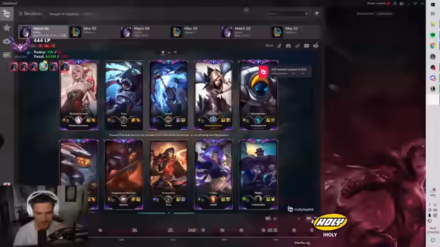 05:22:54Der Streamer spielt ARAM und bemerkt Unterschiede im Gefühl gegenüber normalem Modus. Er diskutiert strategische Entscheidungen wie das Priorisieren von Orkman-Updates und kritisiert Schadensausgaben bestimmter Champions. Die Runde endet mit einer Niederlage nach einer Verluststrähne, später jedoch einer Gewinnserie von vier Spielen hintereinander.