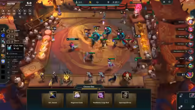 09:35:25Im weiteren Verlauf des Spiels wird die Komposition verfeinert. Der Streamer entscheidet sich für die Bulky Buddies und Gaps Synergien, um die Teamkampffähigkeiten zu verbessern. Es wird die Wichtigkeit von Positionierung betont, insbesondere gegen Gegner mit starken Units wie Shaco. Die Suche nach speziellen Items wie Last Whisper oder Auras für bestimmte Units wird fortgesetzt.