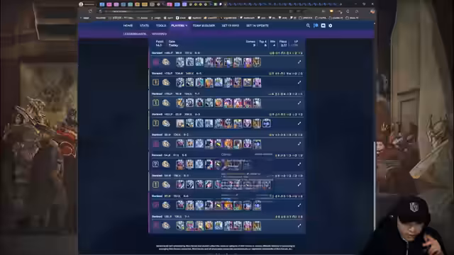 Der Streamer diskutiert die Verfügbarkeit von Match-History-Tools und benutzt nur eine spezifische, aber buggy-seite. Er erwähnt, dass es nur eine solche Seite gibt, die für den Zugang zu Teamplänen genutzt werden kann. Die Limitation von Tracker-Tools wird angesprochen, die im aktuellen Set 14-Ökosystem als unzureichend empfunden werden. Es werden alternative Methoden zur Analyse von Games besprochen.