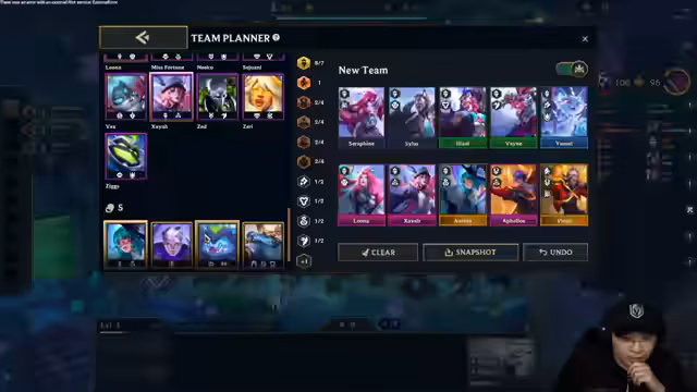 07:16:45Zu Beginn des Streams konzentriert sich der Streamer auf die Aufstellung eines Teams mit Aurora. Er diskutiert die Item-Notwendigkeiten und die Problematik, benötigte Gegenstände wie Shoujin auf mehreren Einheiten zu platzieren. Er plant, sich auf Aurora zu konzentrieren und sucht nach passenden Paaren wie Jhin, um ein kohärentes Team aufzubauen, und plant, Rollen zu starten, um die Einheiten zu finden.