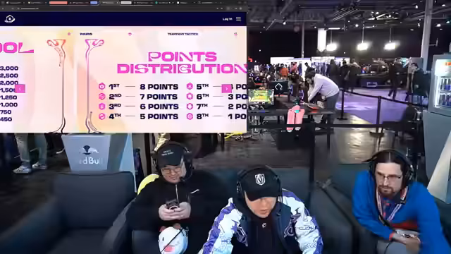 03:04:14Noch einmal werden alle Finalisten des TFT Paris Open kurz vorgestellt, um ihre Herkunft, Stärken und bisherige Erfolge zu betonen. Safo als letzter Europäer, Toddy als Content Creator aus Brasilien, Lilou als kleiner Bruder eines Weltmeisters und Ripple Overdrive aus der starken 'Ovation'-Gruppe. Die Erklärung des Checkmate-Systems wird wiederholt, um die Dringlichkeit zu verdeutlichen: Erster in einem Spiel bringt 8 Punkte, und der erste Spieler, der 20 Punkte hat und ein weiteres gewinnt, ist Champion.