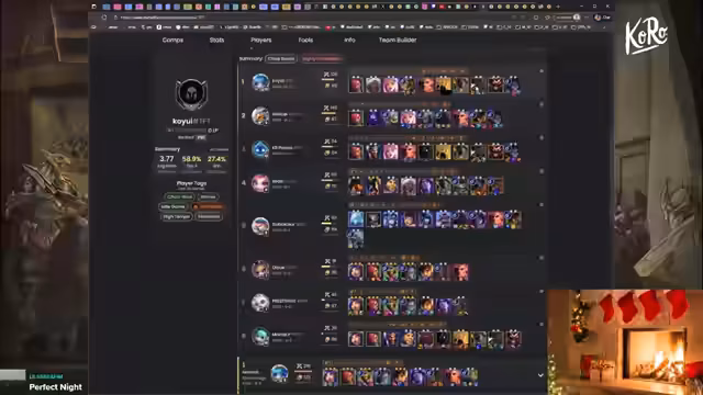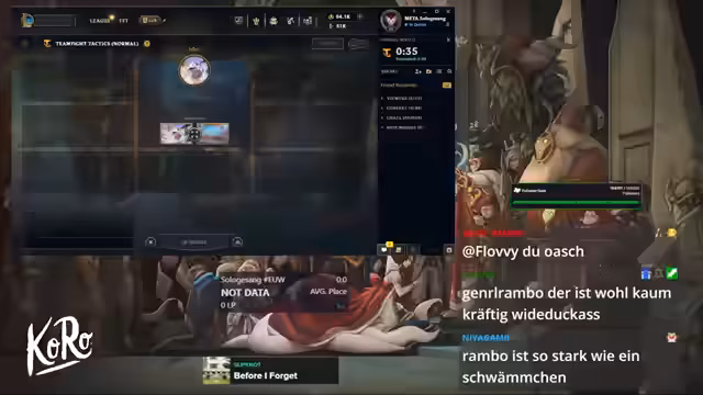 01:48:19Der Stream beginnt mit der Analyse des aktuellen Spiels. Der Fokus liegt auf der Komposition, die um Silas und Freyjord-Einheiten wie Kindred, Loris und Warden aufgebaut wird. Es wird die Rolle von Volibear als Bruiser mit Freyjord-Emblem erwähnt und die Items wie Brambleweste und Blutgier für die Einheiten besprochen. Die Schwierigkeit liegt darin, Silas zu proggen, da er von Gegnern oft ignoriert wird.