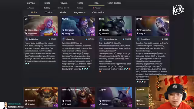 01:12:42Die Zusammenfassung schließt mit der detaillierten Erklärung weiterer Mechaniken. Es werden die neuen Einheiten wie Mecha, Channelers und Field Weavers mit ihren jeweiligen Fähigkeiten und Effekten vorgestellt. Besonderes Augenmerk wird auf den neuen 'Replicator'-Syndrom gelegt, der Fähigkeiten bei reduzierter Effektivität ein zweites Mal auslöst. Zudem wird die Funktion der 'Temporal Cores' für Wiederrolls erklärt und das Thema der Carry-Einheiten behandelt.