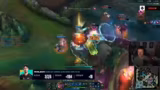 03:04:57Das dritte Spiel wird vom Start an dominiert, als Mainters Rumble früh hinter geht, was als extrem seltene und statistisch unwahrscheinliche Situation beschrieben wird. Dieser Gold- und Erfahrungsrückstand wirkt sich nachhaltig aus, da Rumble als Champion von einem Vorteil abhängig ist. Trotzdem zeigt Nautilus, gespielt von Jun, eine starke Performance mit mehreren exzellenten Hooks, die jedoch den allgemeinen Rückstand nicht aufholen können. GiantX nutzt den Vorteil, kontrolliert das Spiel durch Drakes und Tore, während die Position von Navi als 'beschissen' und 'unplayable' beschrieben wird.