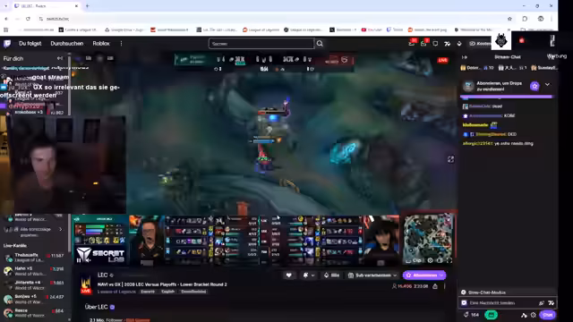 03:35:42Ein unerwarteter Vorfall wird angesprochen, bei dem ein Spieler namens Kutscha sich absichtlich in einem Spiel getötet haben soll, um Platz für einen anderen zu machen. Dies löst eine kurze Diskussion über organisierte Gruppenaktivitäten aus. Anschließend wechselt der Fokus zur LEC, insbesondere zu den kommenden Playoffs. Die Vorfreude auf das internationale Event Firsthand und die dortigen Auftritte von G2 sowie die Entscheidung, dieses Event nicht mehr zu co-streamen, werden thematisiert. Die Gründe dafür sind die hohen technischen Anforderungen, der ungesunde Lebensrhythmus und die mangelnde Freude an den letzten LEC-Streams.