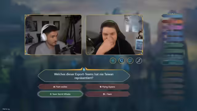02:12:09Die vorletzte Frage stellte den Teilnehmer vor eine enorme Herausforderung, da sie sich auf ein sehr spezifisches, altes E-Sport-Turnier bezog. Es ging um das erste Turnier, in dem die beiden gegeneinander gespielt haben. Nach langem Zögern und der Nutzung der Jokers, da die Frage nicht im Internet zu finden war, wurde 'EPS Winter 2013' (A) als richtige Antwort ermittelt. Letztendlich sorgte die abschließende Millionenfrage nach dem Ursprung von 'Witches Hat' für den entscheidenden Moment. Obwohl es sich um ein Easter Egg für das Ornn-Upgrade von Aurora handelt, wurde fälschlicherweise 'Placeholder-Name vom PBE' (C) gewählt. Dies führte zum Aus im Challenger-Bereich und markierte eine der schwierigsten Fragen in der Quiz-Geschichte.