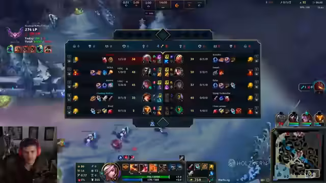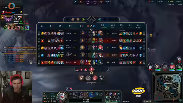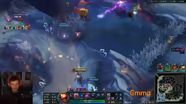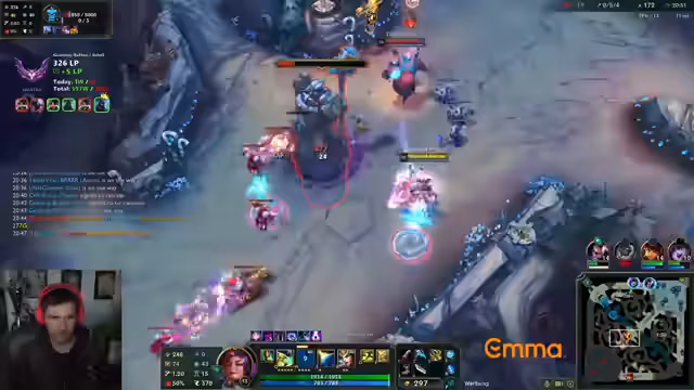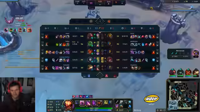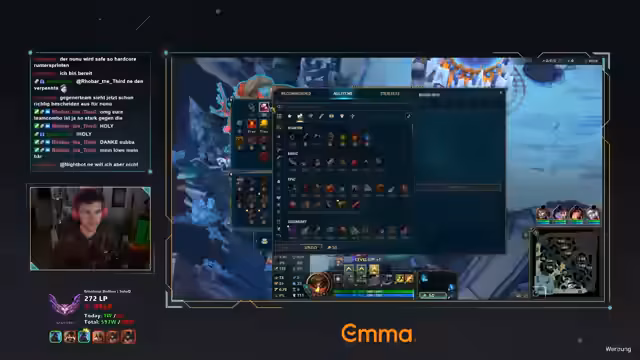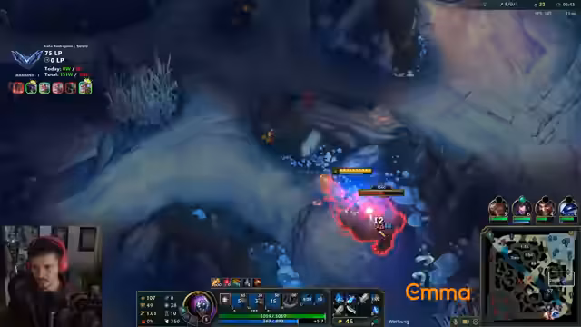 05:35:12Der Streamer analysiert ein verlorenes League of Legends-Spiel. Er kritisiert das Team-Management, insbesondere die Entscheidungen der Diana, die trotz guter Voraussetzungen (8.000 Gold-Führung) den Sieg verspielt hat. Als ADC (Miss Fortune) fühlt er sich nutzlos im Late-Game und bemerkt, dass Teamfights mit diesem Champion schwer zu meistern sind. Der Verlust wird als crazy bezeichnet, da das Team 25 Minuten lang das bessere war.