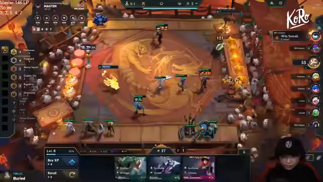 07:29:52Die Komp entwickelt sich zu einer Double-6-Strategie. Der Streamer hat 8er P und hat die Units für eine finale Kombination. Der Fokus liegt darauf, die letzten fehlenden Units wie Koboku und Morde zu finden. Es gibt eine Diskussion über die Platzierung der Units und Items wie Magic Pen. Der Streamer bereitet sich auf einen finalen Angriff vor, bei dem er seine Stärke voll ausspielen will, um das Spiel zu gewinnen.