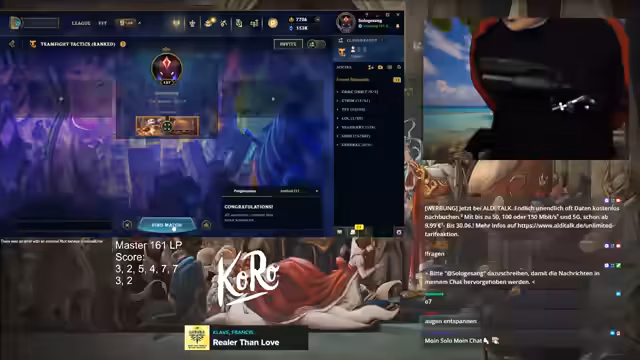 02:31:15Auf eine Chat-Frage hin gibt der Streamer entscheidende Tipps zur Verbesserung im Spiel. Der wichtigste Schritt ist das 'Line Recognition', also das schnelle Erkennen der besten Comp (Magic, Physical oder konkret) basierend auf Drops, Items, Region und Contests in Stage 2. Dieses Fundament ermögliche es, Master zu erreichen. Er erläutert, dass ein solides Fundament das Spiel praktisch von alleine laufen lässt und seine eigene größte Stärke war, die ihn zu Weltmeisterschaften trug. Er betont, dass ein 2-4 Start für Master ausreichend ist, für Grand Master jedoch höhere Platzierungen nötig sind.