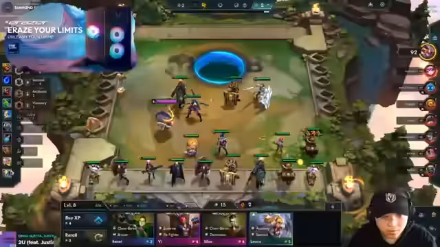 00:28:08Während des Streams werden konkrete Gameplay-Entscheidungen für verschiedene Kombinationen (Comps) erörtert. Der Streamer entscheidet sich für einen Build mit Mundo als Frontline und Urgath/ Zyra als Carry. Er identifiziert die Notwendigkeit eines zweiten Watchers und rollt aktiv nach LeBlanc, um die Synergie zu vervollständigen. Nachdem er Schwierigkeiten hat, die richtigen Einheiten zu finden, passt er seinen Plan an, indem er Elise als Frontline einsetzt und die Items auf Swain verteilt, um eine tragfähige Kombination zu bilden und zu stabilisieren.