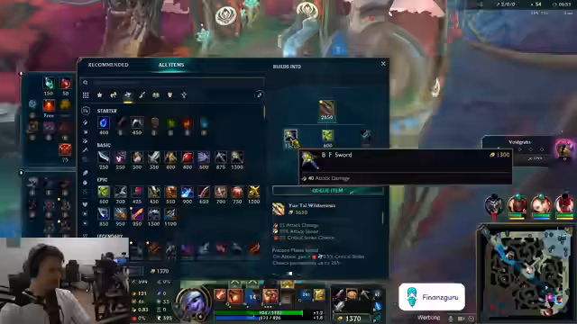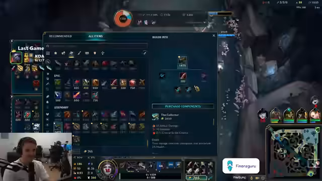 02:48:44Während des Streams werden verschiedene League of Legends-Spiele gespielt. Der Streamer analysiert seine Spielentscheidungen, wie den Verkauf von Dorans Ring, und testet unterschiedliche Champions wie Jinx, Pantheon und Timo. Es kommt zu technischen Problemen und Verbindungsabbrüchen, wie bei der Verbindung zum chinesischen Server, die den Fortgang der Spiele behindern. Die Nutzung von VPN scheitert ebenfalls. Der Streamer beschreibt sein Gameplay, seine Champion-Selects und die Herausforderungen in den verschiedenen Lanes, während er gleichzeitig nach technischen Lösungen sucht, um den chinesischen Account nutzen zu können.