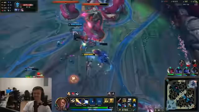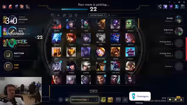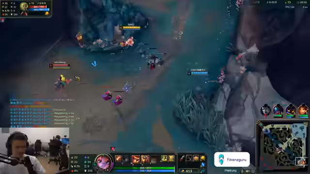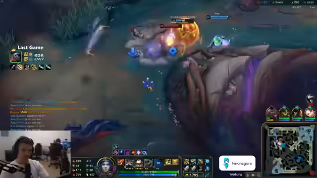 08:46:22Der Streamer diskutiert mit seinem Teamkollegen über die Notwendigkeit von vier statt üblichen drei Kills für bestimmte Fähigkeiten wie Grand Prix. Er erwähnt Probleme mit Champions wie Lux und Yuumi, die seiner Meinung nach zu langsam Objectives wie den Drachen farmingen. Bei seiner Champion-Wahl Gangplank vergleicht er sich mit einem Künstler und erklärt die Bedeutung von Items und Leveln für seine Fass-Kombo. Ein Thema ist auch die zunehmende Schwierigkeit des Spiels und die sinkende Elo von Master-Spielern, wofür er mehr Master-Spieler anführt. Gegenüber dem Challenger-Server auf Taiwan bewegt er sich auf Gold-Niveau.