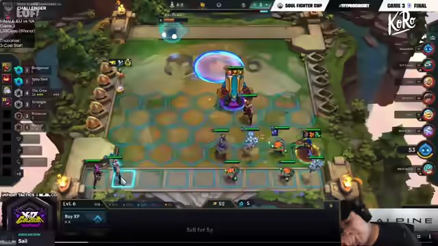 04:31:19Die Auswahl von Augments wird thematisiert, wobei Power of Friendship, Savage Bin und Forward Thinking in Betracht gezogen werden. Power of Friendship wird als besonders stark für Stargarden-Kompositionen angesehen, da es alle Einheiten bufft. Forward Thinking wird ebenfalls als gute Option für die aktuelle Position des Spielers bewertet. Es wird festgestellt, dass Jinx in fast jedem Game des Gewinners des China Apex Cups gespielt wurde. Der Streamer kündigt an, Jinx im Turnier jedes Spiel zu spielen, wenn der Patch so live geht, und fordert die Zuschauer auf, Jinx in den Chat zu schreiben, um die Wahrscheinlichkeit zu verringern, dass andere Spieler diese Komposition wählen. Die Diskussion über Items geht weiter, wobei Nashor's Tooth und Giant Slayer als wichtige Optionen für Jinx genannt werden.