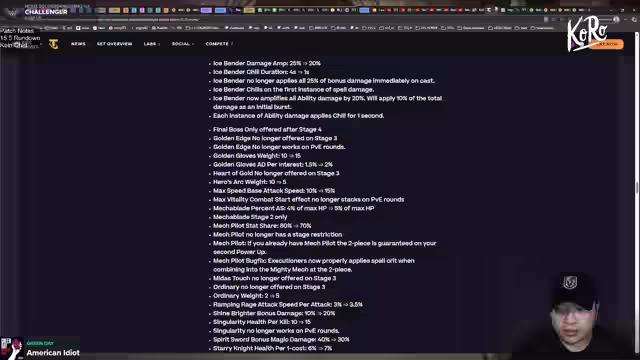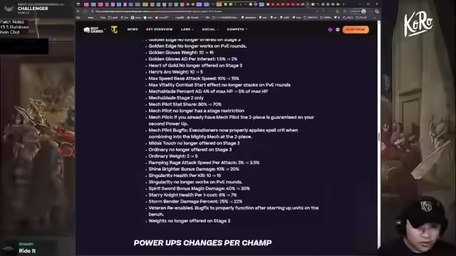 01:41:03Es wird eine Analyse der Legendary-Units basierend auf den ersten 325.000 Spielen in Diamant und höher durchgeführt. Seraphine und Braum wurden gebufft, während Lee Sin und Duelist generft wurden. Volibear ist leicht besser geworden, und Ryze hatte zuvor sehr starke Statistiken. Kog'Maw scheint im Early Game stark zu sein, da seine Reichweite und Penetration erhöht wurden. Der Streamer erwähnt einen wiederkehrenden Bug, bei dem Augments als entfernt angekündigt werden, aber weiterhin im Spiel sind. Er leidet unter Allergien, die seine Augen und Nase beeinträchtigen, und sucht nach wirksamen Mitteln. Er schlussfolgert, dass Kog'Maw und Yuumi nach den Buffs sehr stark sind und Jinx weiterhin eine gute Option ist. Er geht auf die Änderungen bei den Items und Synergien ein, wobei Crystal Gambit, Prodigy und Edge Lord leichte Verbesserungen erfahren haben.