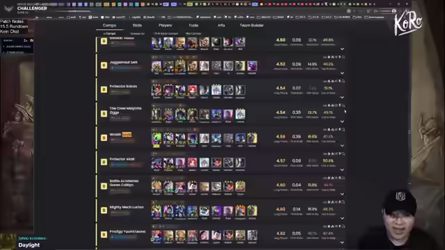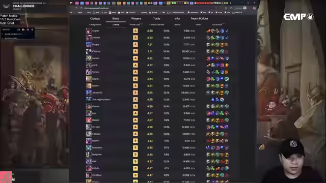 02:44:10Der Streamer diskutiert die Auswirkungen des neuen Patches 15.5 auf die Spielbalance, insbesondere die Stärke von 'Soulfighter'-Kombinationen. Er stellt fest, dass 'Soulfighter' laut Statistiken im letzten Patch als 'Tier 0' galt, in der Praxis jedoch nicht so dominant war. Dies unterstreicht die Notwendigkeit, Statistiken kritisch zu interpretieren und im Kontext des tatsächlichen Gameplays zu bewerten. Des Weiteren wird die Leistung von 'Rage Pit' analysiert, die trotz hoher Spielmenge in den Statistiken schlecht abschneidet, was auf die breite Nutzung durch alle Spielertypen zurückzuführen ist. Der Streamer betont die Wichtigkeit, verschiedene Analyse-Tools zu vergleichen und eigene Schlussfolgerungen zu ziehen. Er erwähnt auch, dass 'Sorcerer' im frühen Spiel gestärkt wurde, was neue Strategien ermöglicht.