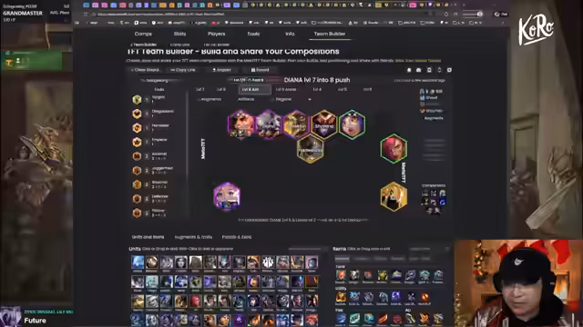 00:38:27Der Streamer kooperiert mit MetaTFT für statistische Daten. Die Plattform bietet kostenlose Tierlisten, Item-Empfehlungen (z.B. von links nach rechts priorisiert) und Positionierungs-Guides. Features wie Shop-Alerts (im Tool aktivierbar) helfen beim Targeting. Anti-Diana-Positionierung wird im Tool unter Pro Coms erklärt.