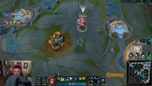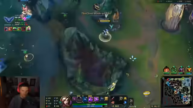 05:25:50Während eines Spiels, in dem ein Mitspieler Jhin Top wählt, analysiert der Streamer dessen Spielstil und Item-Build. Er kritisiert den Spieler für seine, aus seiner Sicht, dauerhafte und riskante Spielweise, aber erkennt auch die Wirksamkeit von dessen Item-Builds und Spielstil. Er vergleicht Jhin mit anderen Champions wie Samira und stellt fest, dass sich Spiele auf der Support-Position oft besser anfühlen als auf der AD-Carry-Rolle.